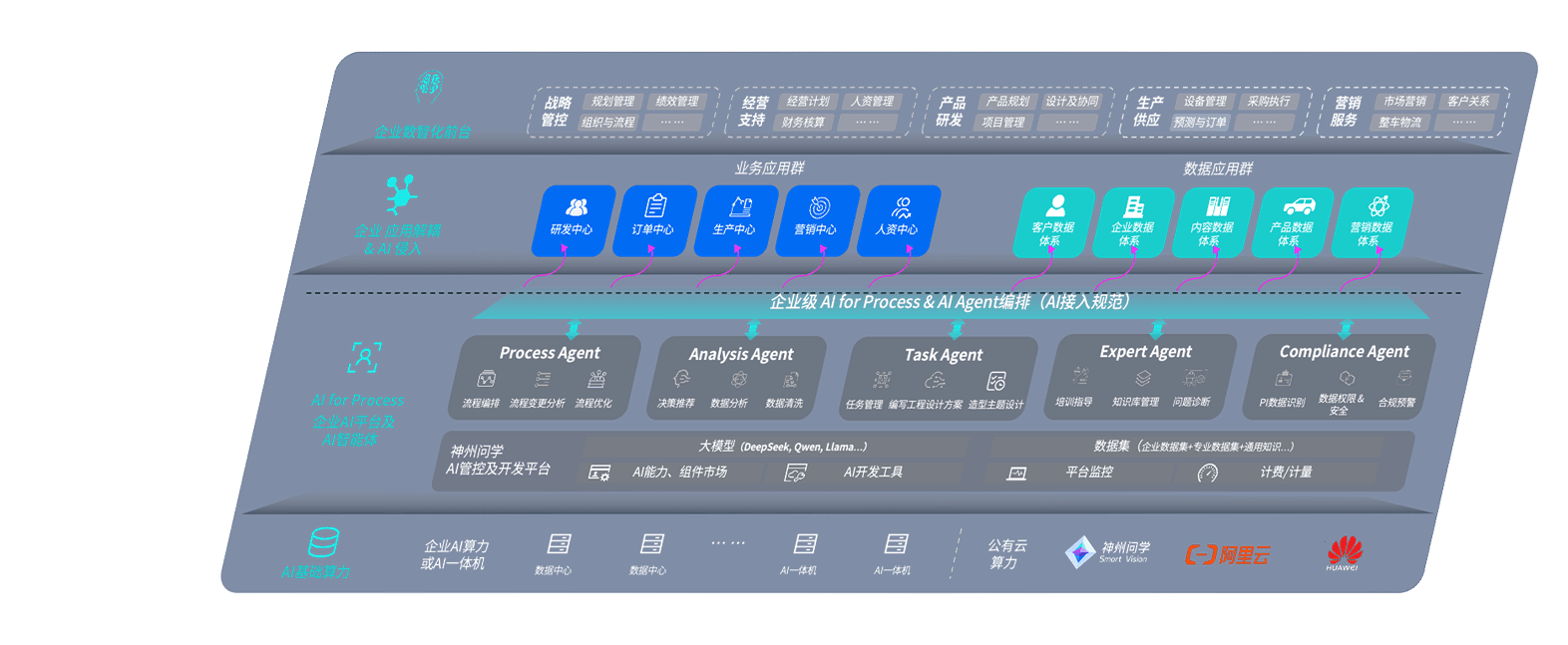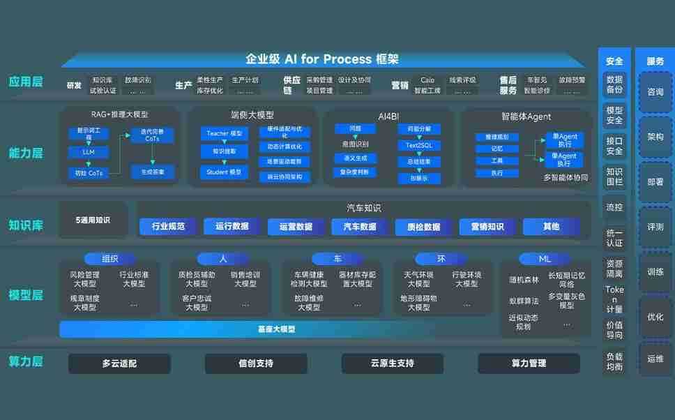 PG国际问学智车解决方案是一套基于AI技术的汽车行业智能化系统,,覆盖从底层算力到顶层AI应用的全栈方案。。。方案由算力层、、、、模型层和应用层组成:算力层,,方案支持多种一体机配置,,,,具备云端灵活部署、、、多云适配以及动态优化计算资源的能力;模型层,,PG国际问学平台版提供了企业级AI应用一站式构建与管理平台,,支持基于后训练强化技术的汽车企业专属模型的训练、、、、评测和运营;应用层,,,,PG国际问学DeepSeek版提供包括超级员工、、、智能招采、、、、智能营销、、、智能客服、、AI for BI等一系列解决方案,,可助力汽车行业实现数字化转型,,让管理更智能、、、响应更敏捷。。